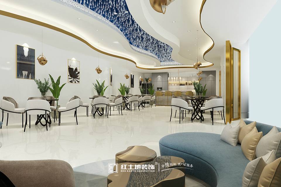 故整個(gè)一層以前臺(tái)為起點(diǎn),以一種復(fù)雜、不確定性的連續(xù)式曲線(xiàn)造型貫穿整個(gè)一層,前臺(tái)、大堂以木板作為曲面造型,而企業(yè)文化區(qū)、產(chǎn)品展示區(qū)的曲線(xiàn)造型會(huì)采用調(diào)光玻璃(調(diào)光玻璃采用藍(lán)色為主調(diào),白色、淺藍(lán)色為次調(diào)),兩種材質(zhì)之間的碰撞,使區(qū)域劃分更加明顯。行進(jìn)到產(chǎn)品展示、企業(yè)文化區(qū)域的參觀(guān)人員或客戶(hù)會(huì)瞬間置身于科幻,未來(lái)科技感十分強(qiáng)烈的世界里;而作為支撐建筑的柱位,以藝術(shù)玻璃圓弧彎曲成圓柱,并以倒圓錐的結(jié)構(gòu),由下到上以開(kāi)花的樣式表達(dá),呼應(yīng)了整個(gè)一層的曲線(xiàn)造型,又能表達(dá)出泰坦新動(dòng)力企業(yè)深根大灣區(qū),做世界科技行業(yè)領(lǐng)航者;而一層展廳背后的辦公室區(qū)域,墻身以透明玻璃相間,通透玻璃帶來(lái)強(qiáng)烈的光線(xiàn)照明,令辦公空間更加透明,便于管理;墻角位會(huì)采用圓弧的樣式表達(dá)出來(lái),看似一個(gè)個(gè)獨(dú)立的圓形盒子辦公室/辦公區(qū)域,實(shí)際上的環(huán)環(huán)相扣的圓球。