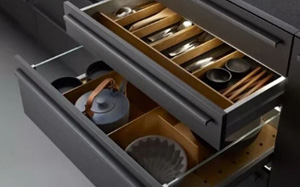 接下來我們就要開始注重細節(jié)方面的問題: 三,看墻面 1.利用墻面做收納 想解放臺面空間,可以利用墻面,在吊柜底部加個拉籃,或者加壁掛式置物格,輕松取物,還不占地方,輕松實現(xiàn)雜物上墻。
