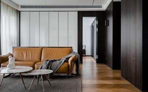 深色木紋與灰色共同編織了一個寧靜,至簡的現(xiàn)代三居室。